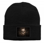 Czapka z wełny akrylowej w kolorze czarnym z grafiką czaszki.