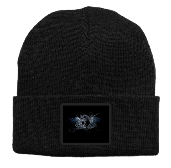 Czapka z wełny akrylowej w kolorze czarnym z grafiką czaszki.