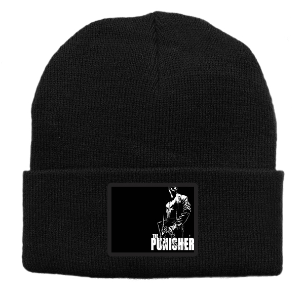 Czapka z wełny akrylowej w kolorze czarnym z grafiką filmu The Punisher.