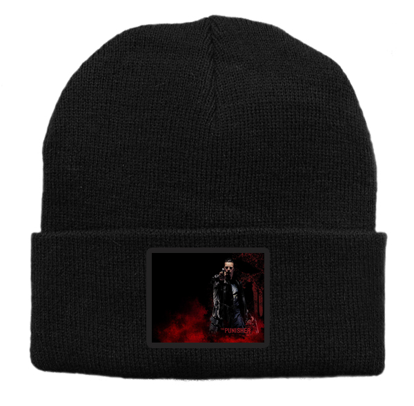 Czapka z wełny akrylowej w kolorze czarnym z grafiką filmu The Punisher.