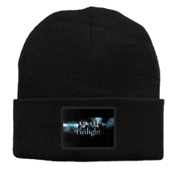 Czapka z wełny akrylowej w kolorze czarnym z grafiką filmu Zmierzch.