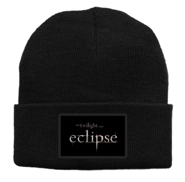 Czapka z wełny akrylowej w kolorze czarnym z grafiką filmu Zmierzch.