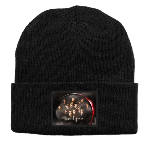 Czapka z wełny akrylowej w kolorze czarnym z grafiką filmu Zmierzch.