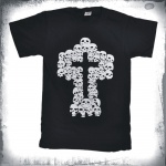 Koszulka z mroczną grafiką krzyżą i góry czaszek.