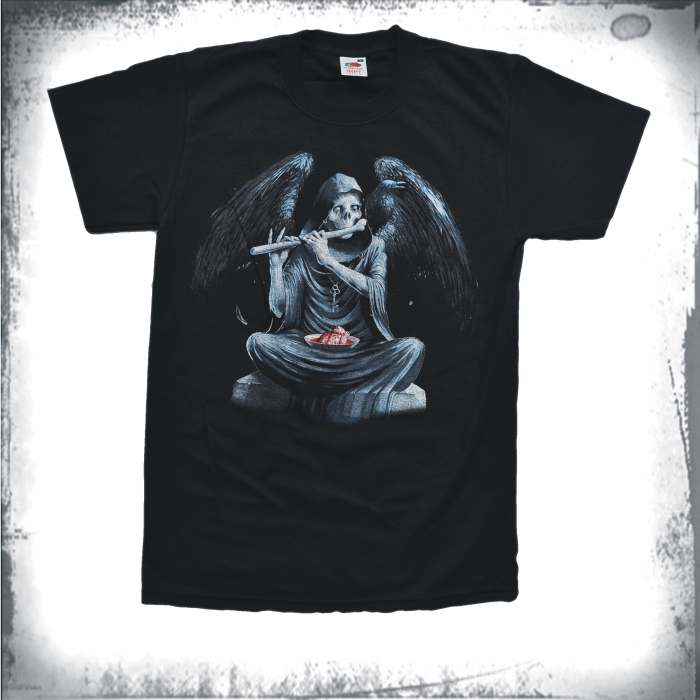 Czarny T-Shirt z doskonałą grafiką przedstawiającą grającą Śmierć.