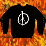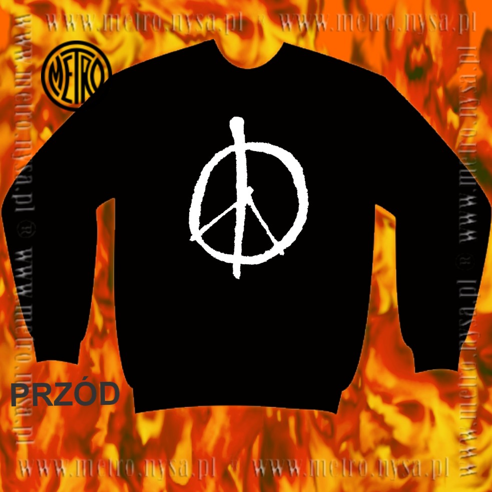 Komfortowa bluza z białym odręcznym logiem znanego symbolu pacyfizmu, znaku pokoju, użytego po raz I podczas demonstracji w 1958 roku. Bluza posiada ściągane rękawy.
