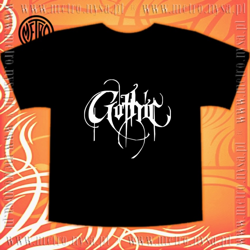 Koszulka T-Shirt z nadrukiem gotyckiego napisu.