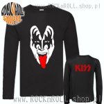 Komfortowa czarna koszulka z długim rękawem z motywem zespołu legendarnej glam rockowej załogi KISS. Grafika przedstawia twarz lidera zespołu - Gene Simmons'a.