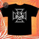 Koszulka z uśmiechniętymi;) czaszkami na tle krzyża.