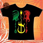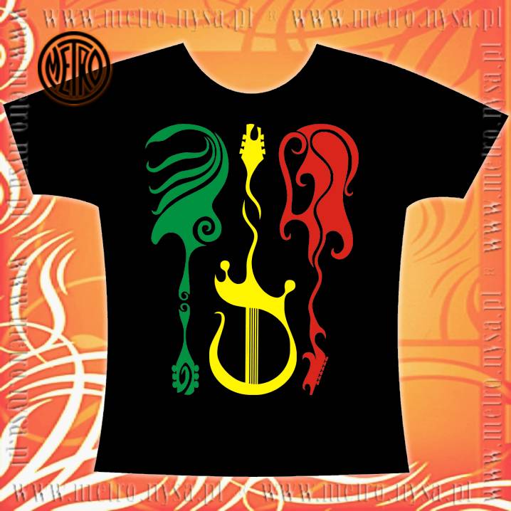 Świetna koszulka z nadrukiem trzech gitar w kolorach rasta.