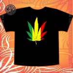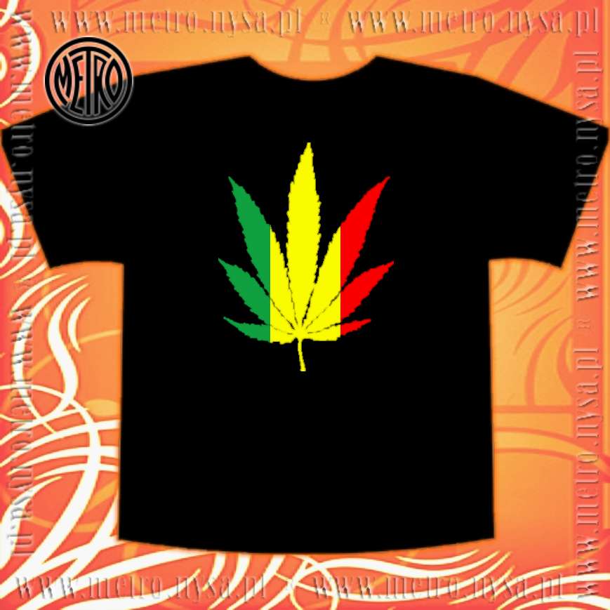 T-shirt z nadrukiem magicznego liścia w kolorach rasta.