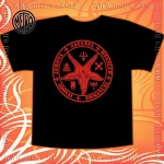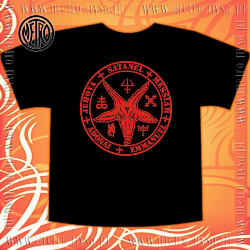 Czarny T-shirt z nadrukiem mrocznego pentagramu.