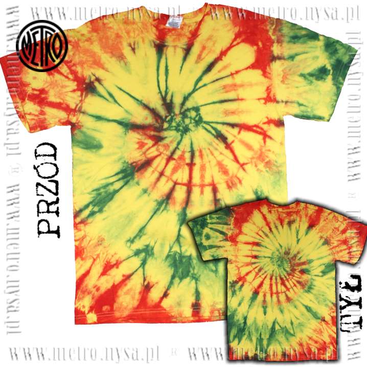 Świetna barwiona koszulka w kolorach żótym, czerwonym ora zielonym, układających się według wskazówek zegara ;)