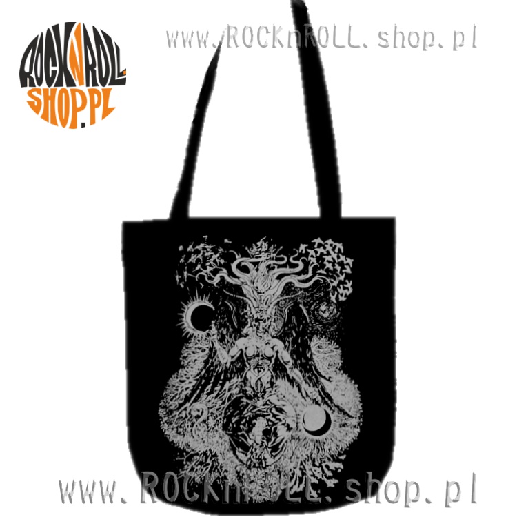 Czarna wygodna i praktyczna torba ekologiczna z nadrukiem przedstawiającym demonicznego Baphometa