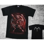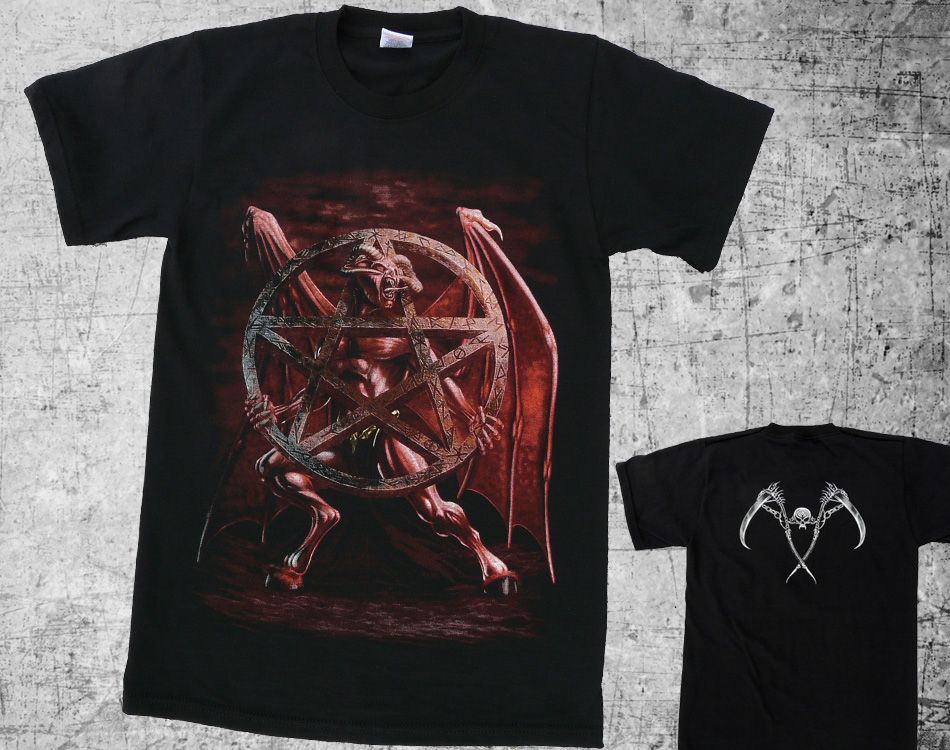 Czarny i wygodny t-shirt przedstawiający demona dźwigającego pentagram