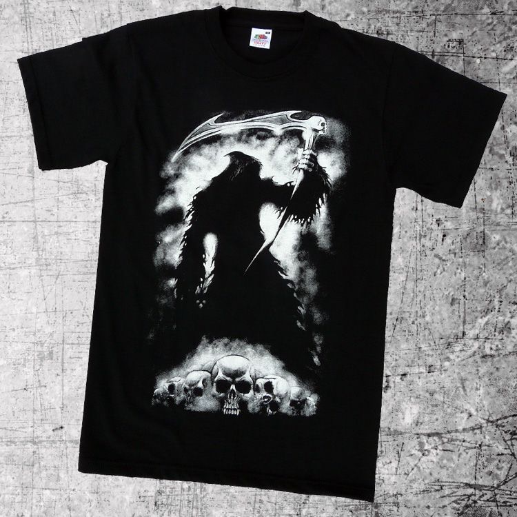 Czarny i wygodny t-shirt przedstawiający śmierć czającą się we mgle