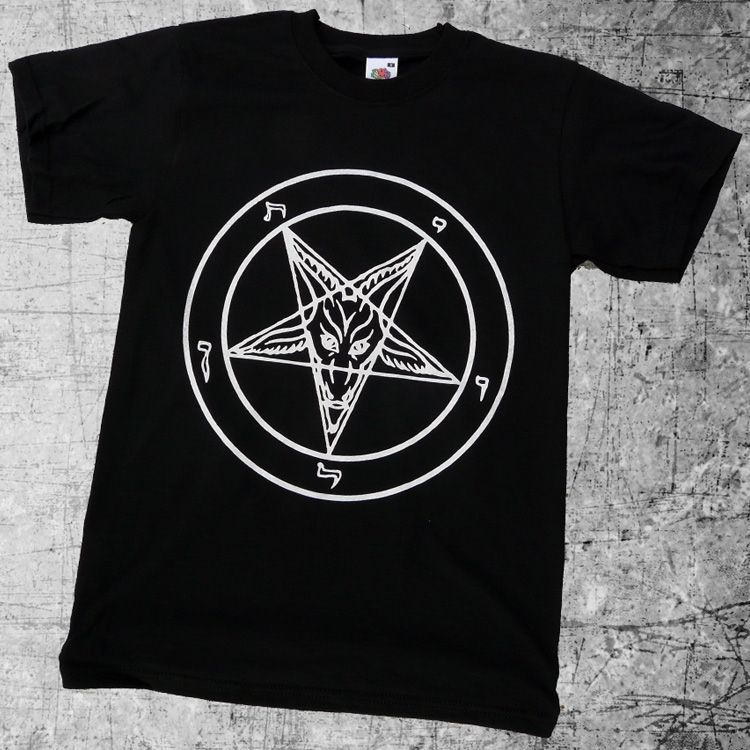 Czarny i wygodny t-shirt przedstawiający pentagram z głową kozła