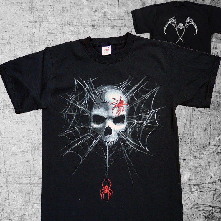 Czarny i wygodny t-shirt  z czachą w pajęczynie