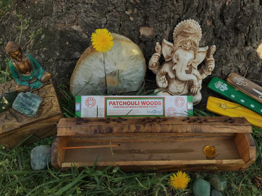 Patchouli to roślina, która rośnie głównie w Indonezji, ma szerokie zastosowanie w ogrodnictwie, perfumiarstwie i medycynie. Kadzidło pachouli działa odprężająco, uspokaja, wprowadza w dobry nastrój, a także uznawana jest za afrodyzjak. Dodatkowo odstrasza mole, odświeża zapach domu, działa dobrze w czasie przeziębienia – zawiera związki aktywne niszczące bakterie i wirusy.
