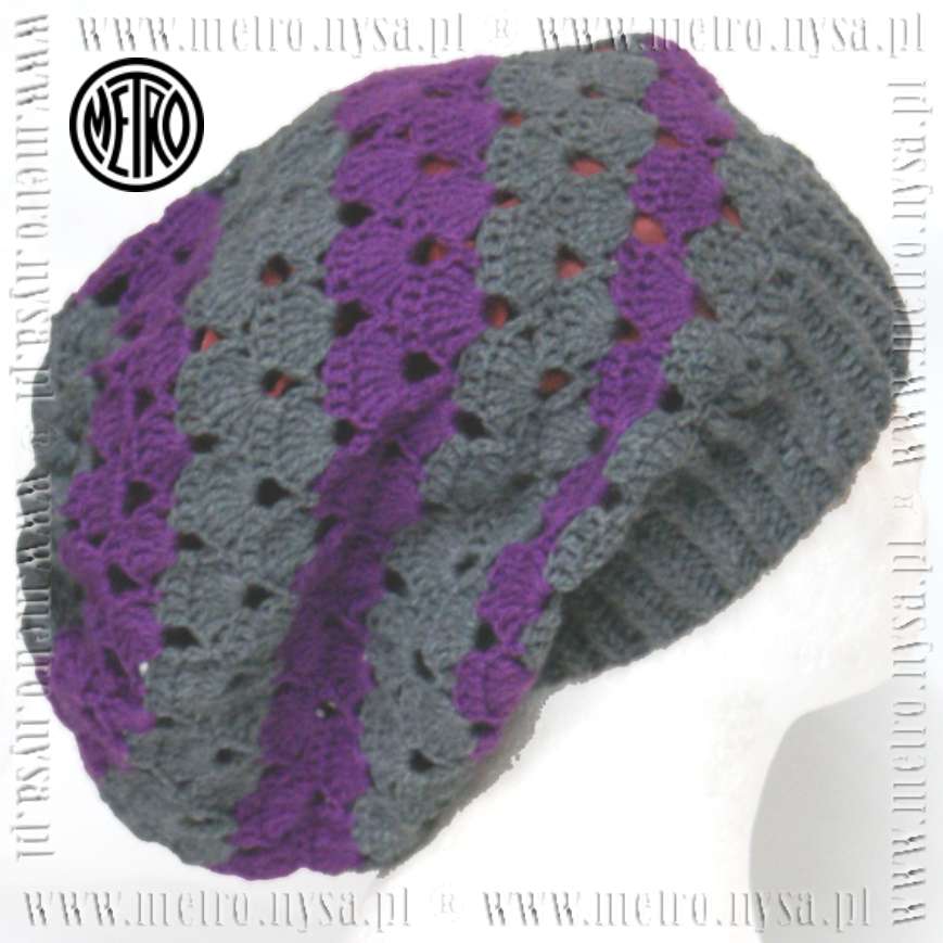 Rewelacyjna ręcznie wykonana czapka na dready w szare i fioletowe pasy.