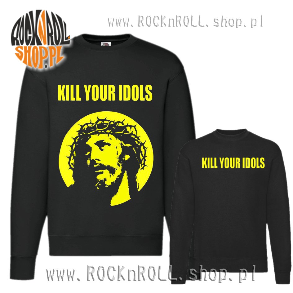 Komfortowa bluza z żółtą podobizną Jezusa oraz znanym hasłem o "Zabijaniu swoich idoli".