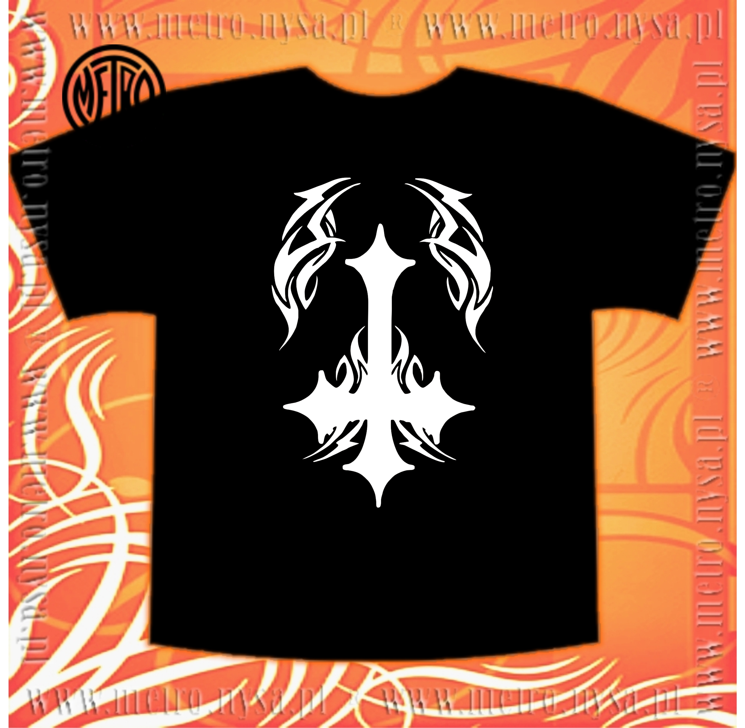 Czarny i wygodny t-shirt z nadrukiem odwróconego krzyża.