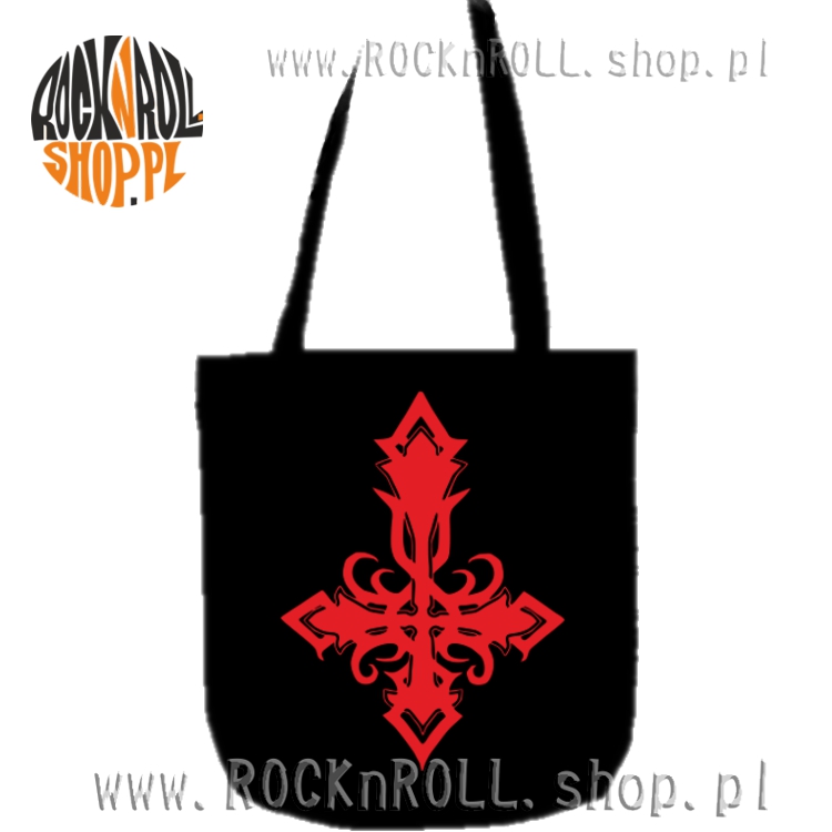 Czarna wygodna i praktyczna torba ekologiczna z grafiką odwróconego krzyża.