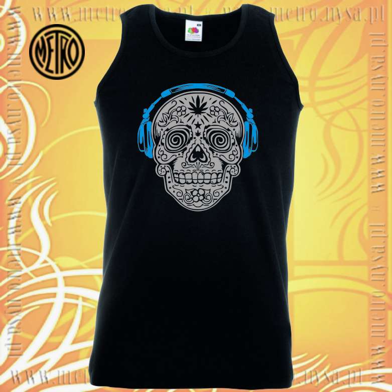 Sleeveless z charakterystycznym nadrukiem rewelacyjnie zdobionej czachy w słuchawkach.