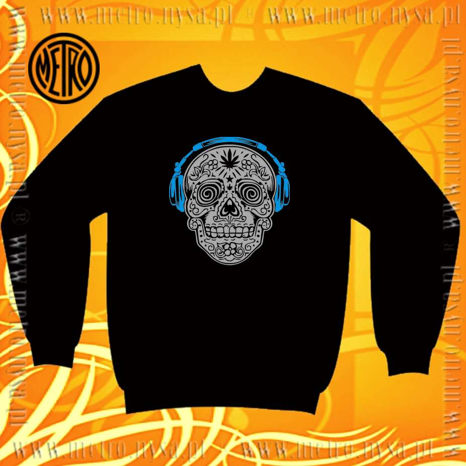 Komfortowa bluza z charakterystycznym nadrukiem rewelacyjnie zdobionej czachy w słuchawkach.