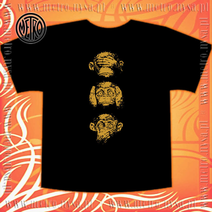 Czarny i wygodny t-shirt - Małpy - Nie widzę, nie słyszę, nie mówię.