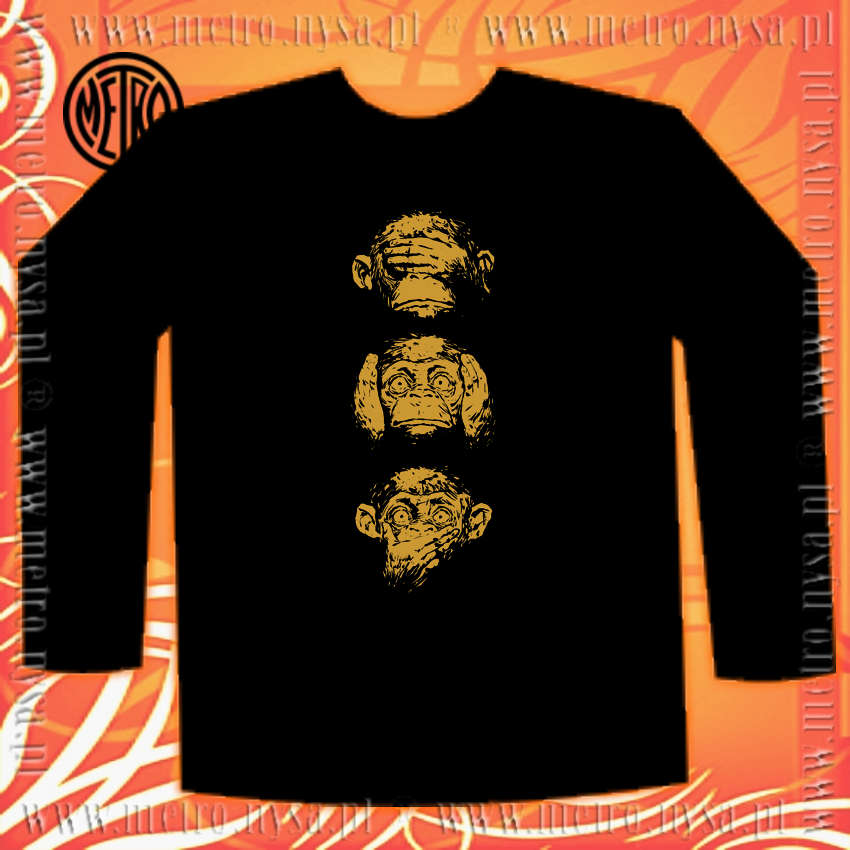 Czarny longsleeve z grafiką trzech małp, Nie widzę, nie słyszę ,nie mówię.