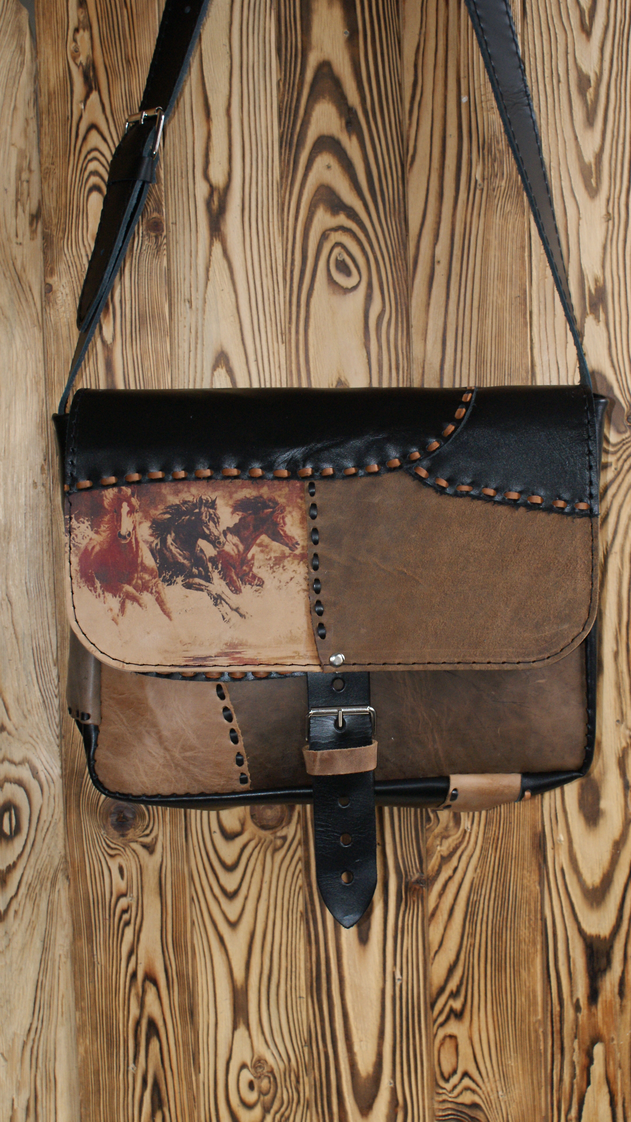 Ciekawa, wykonana w 100% ze skóry, torba skórzana, rękodzieło.