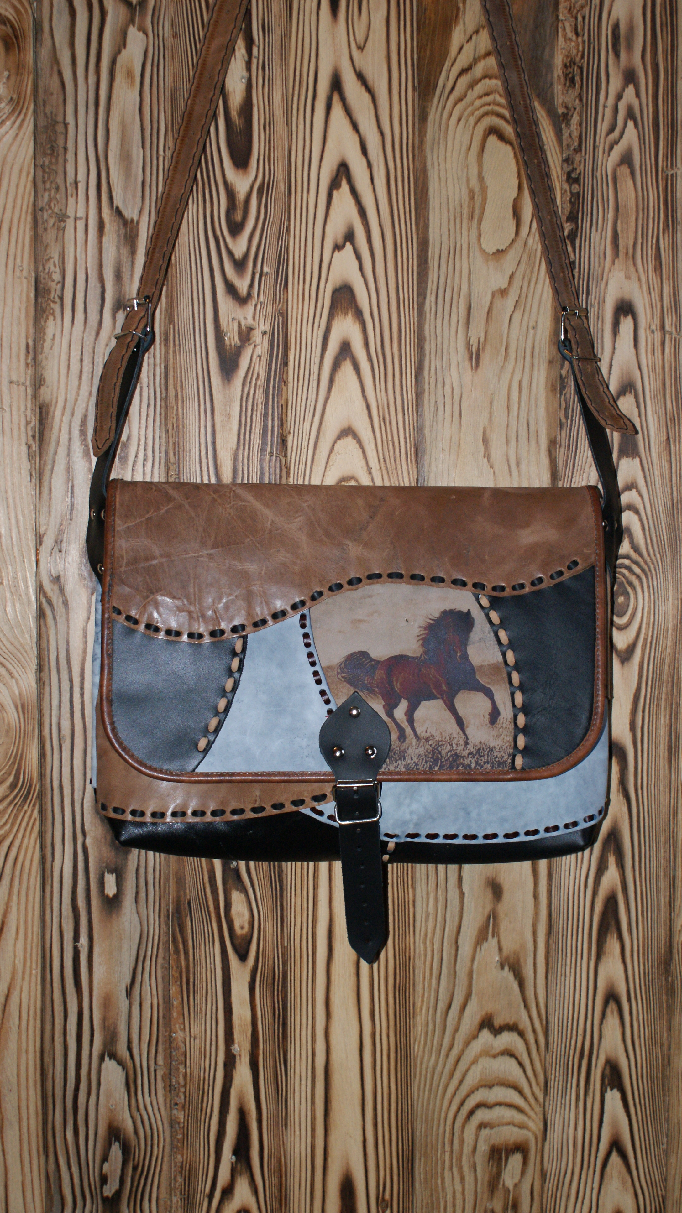 Ciekawa, wykonana w 100% ze skóry, torba skórzana, rękodzieło.