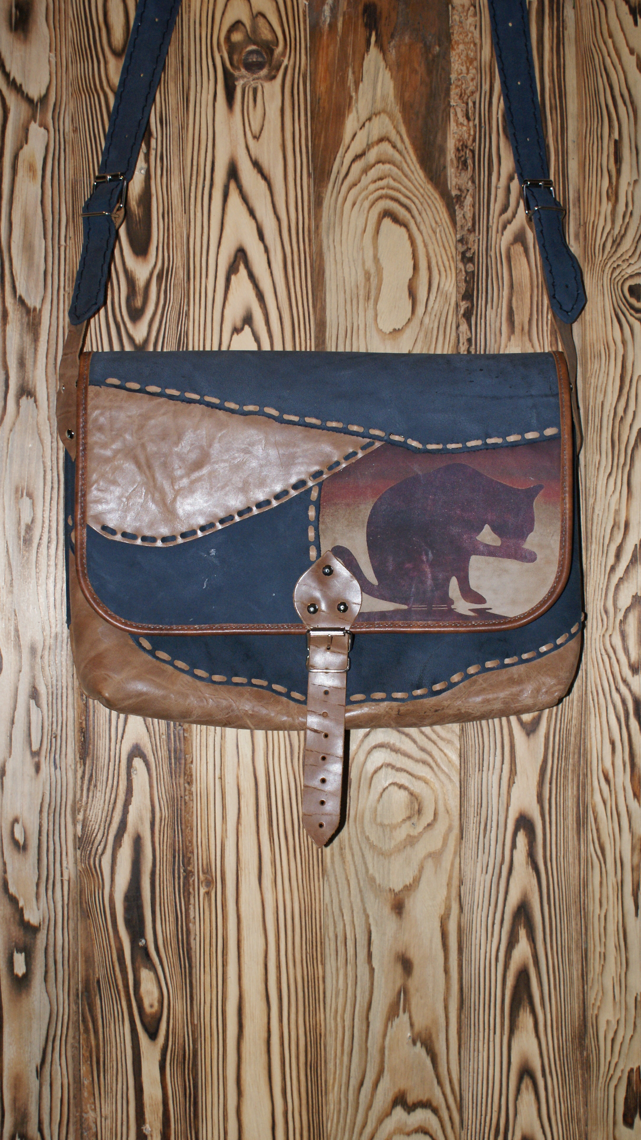 Ciekawa, wykonana w 100% ze skóry, torba skórzana, rękodzieło.