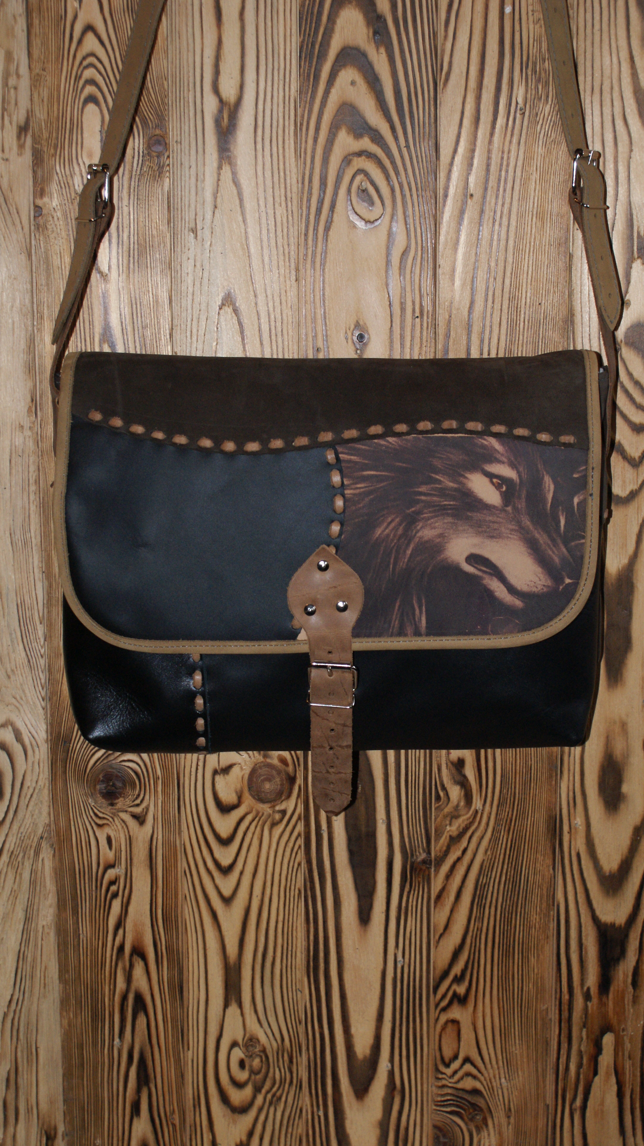 Ciekawa, wykonana w 100% ze skóry, torba skórzana, rękodzieło.