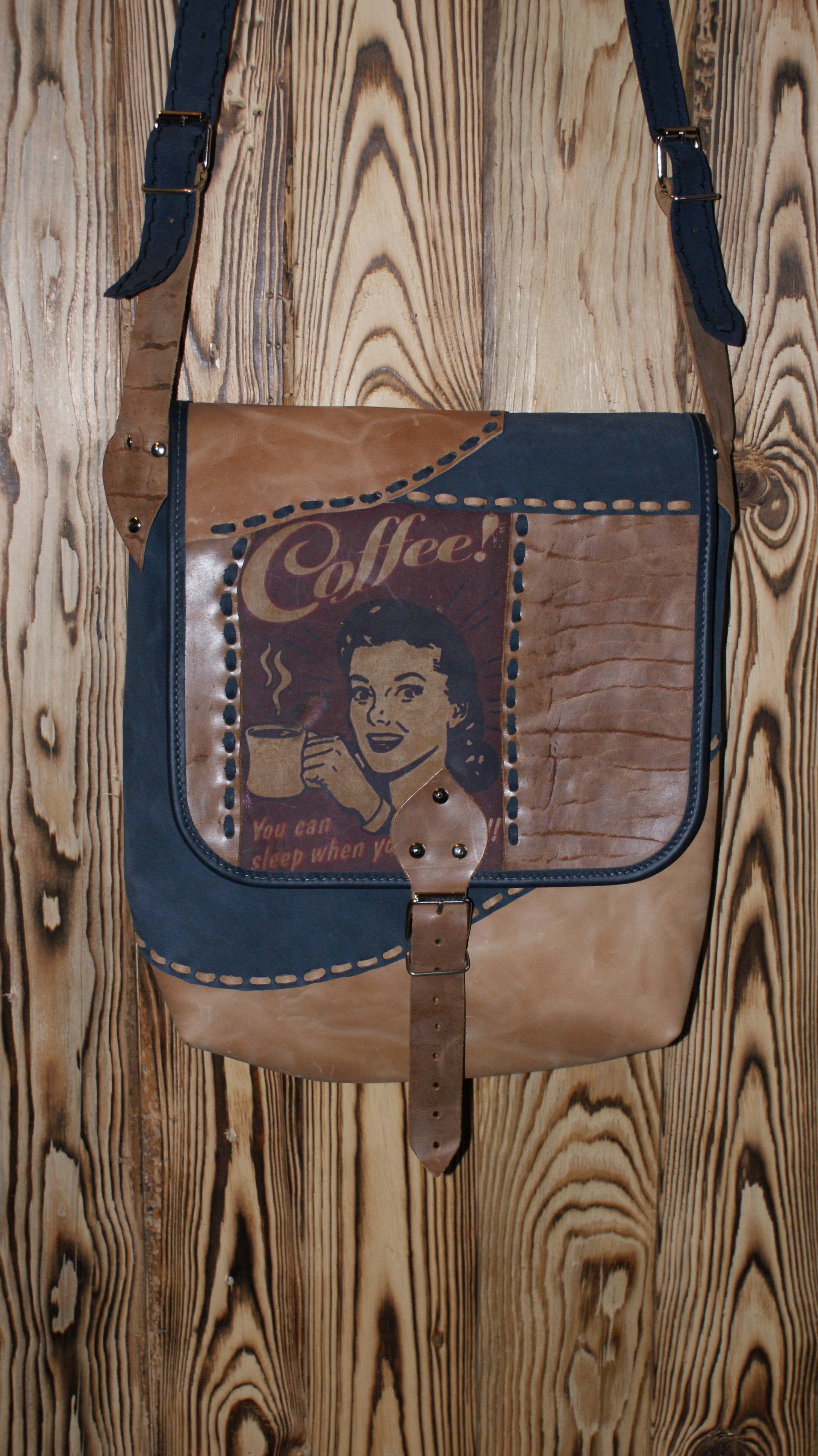 Ciekawa, wykonana w 100% ze skóry, torba skórzana, rękodzieło.