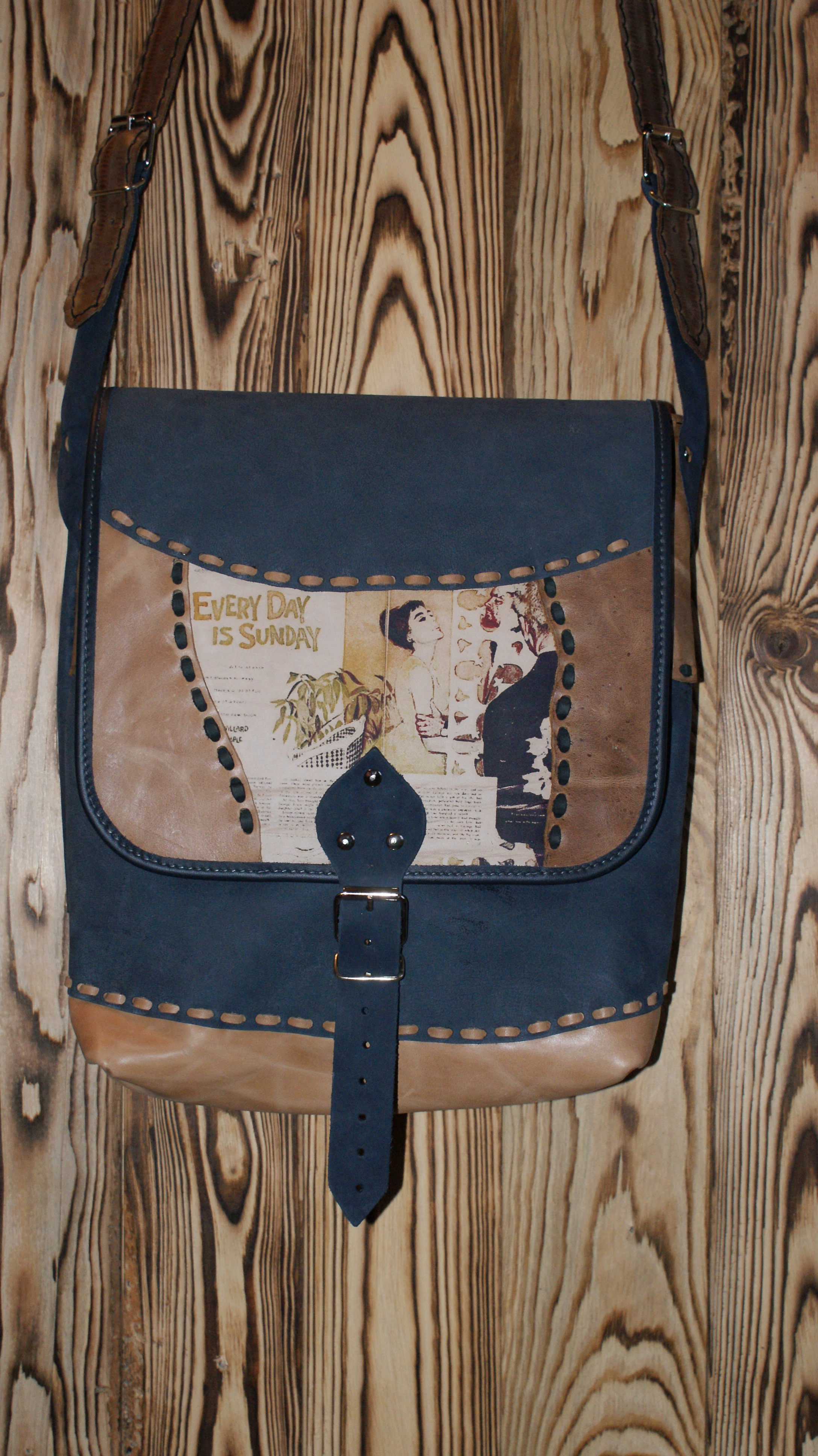 Ciekawa, wykonana w 100% ze skóry, torba skórzana, rękodzieło.