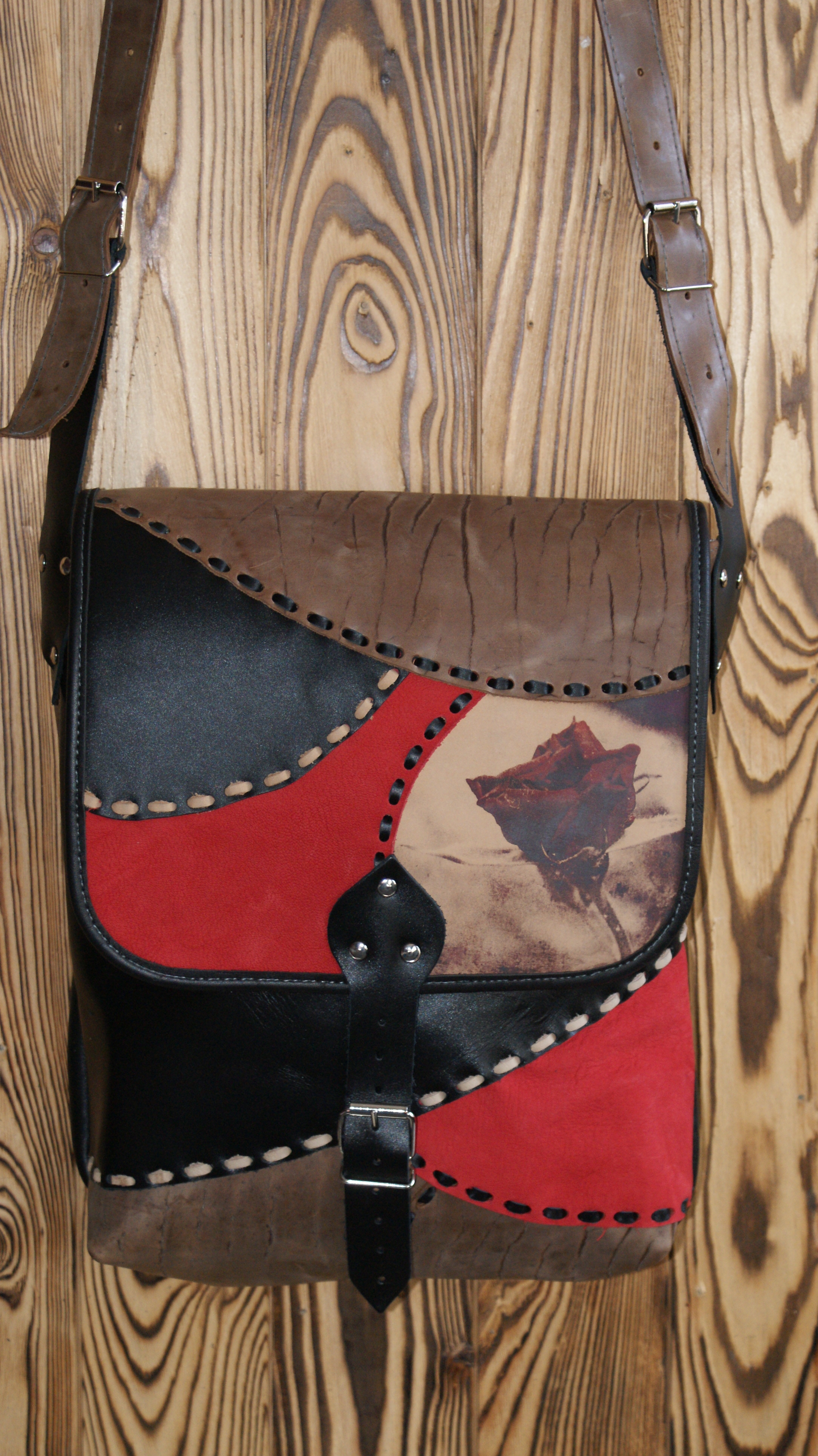 Ciekawa, wykonana w 100% ze skóry, torba skórzana, rękodzieło.