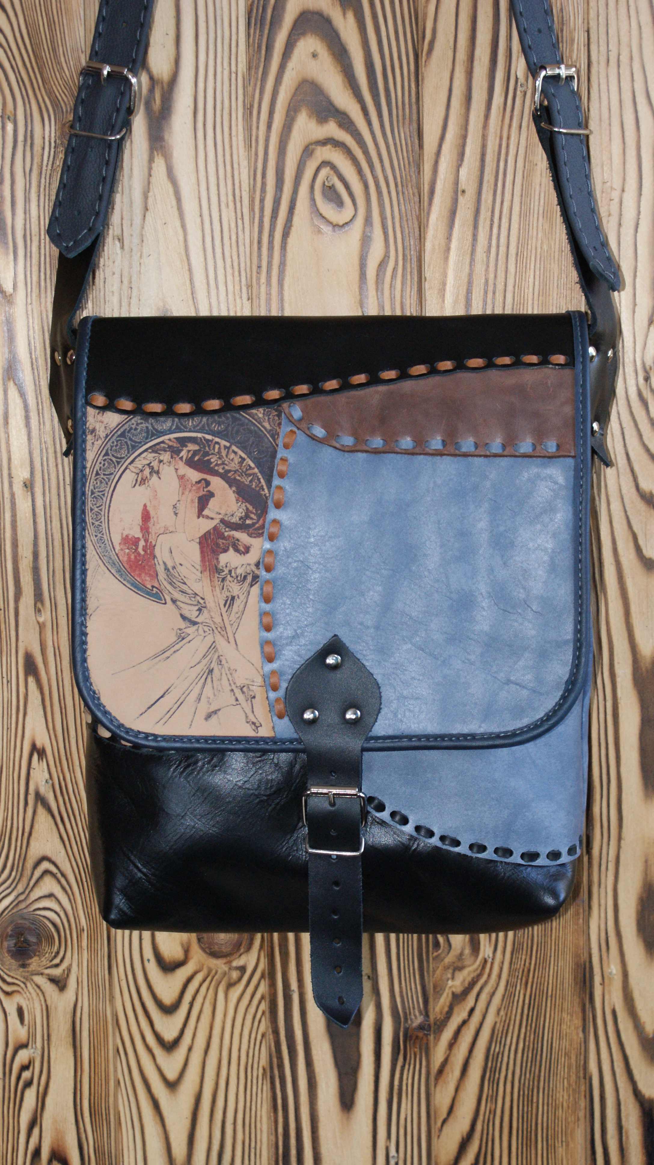 Ciekawa, wykonana w 100% ze skóry, torba skórzana, rękodzieło.