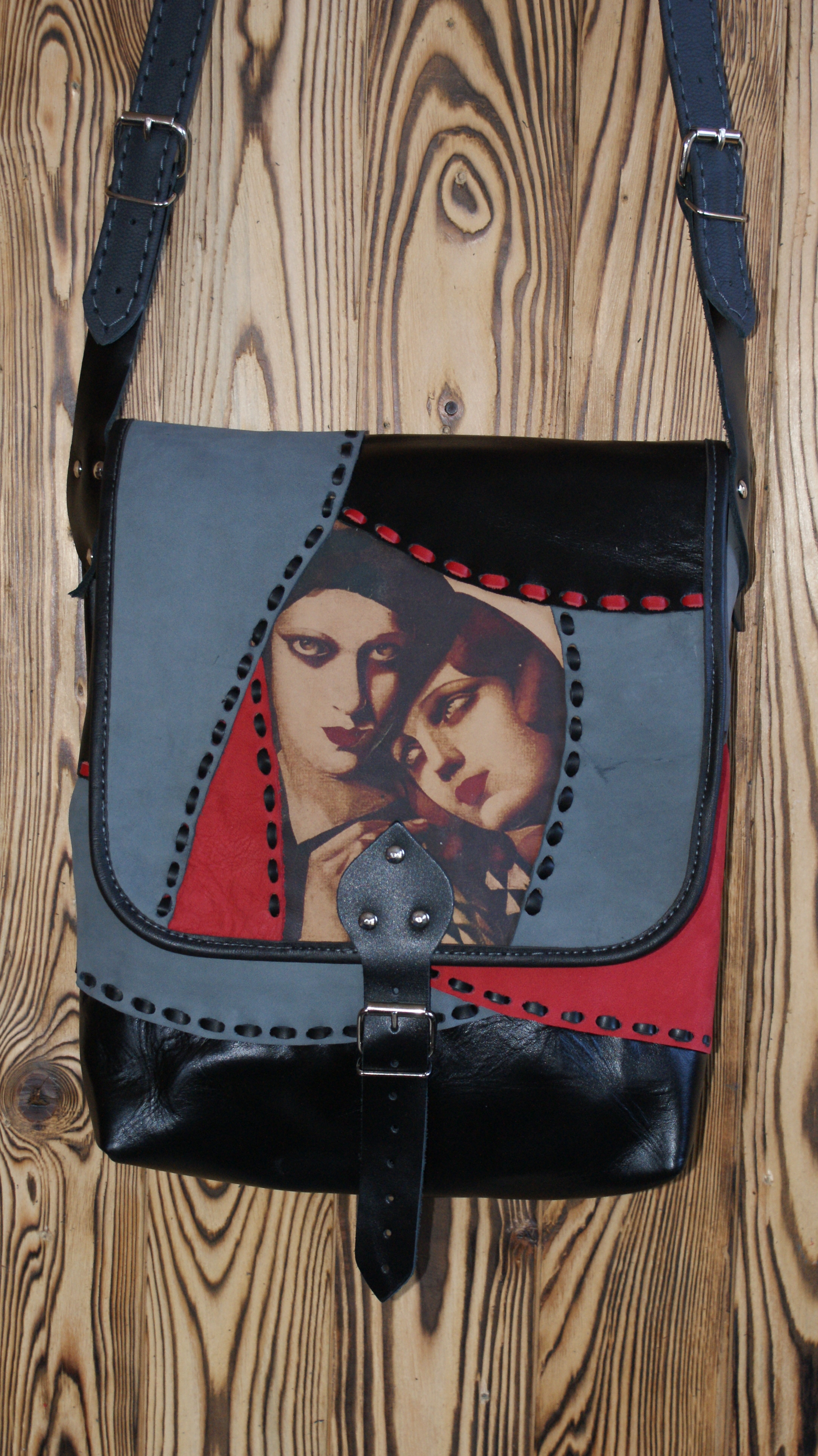Ciekawa, wykonana w 100% ze skóry, torba skórzana, rękodzieło.