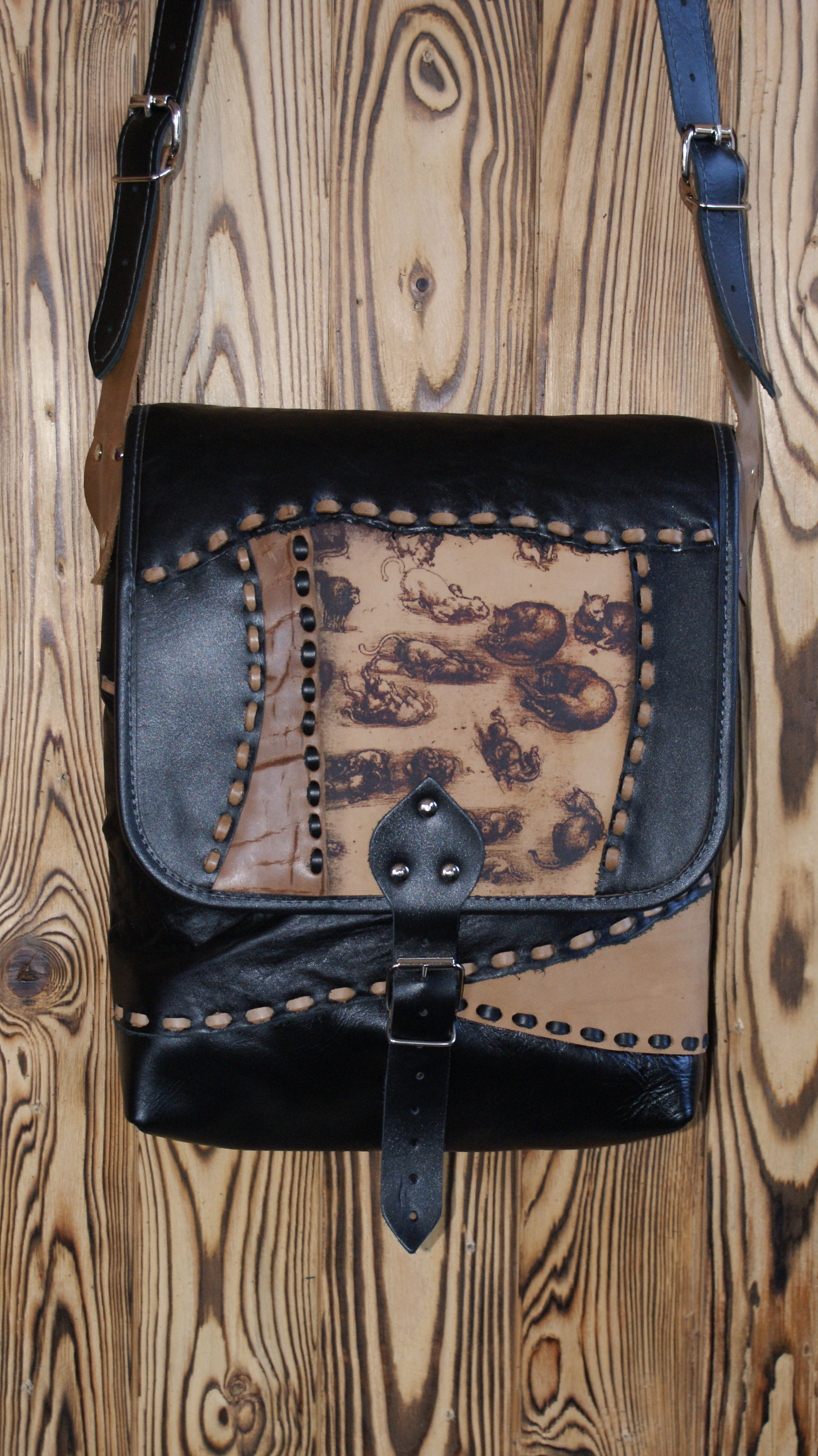 Ciekawa, wykonana w 100% ze skóry, torba skórzana, rękodzieło.
