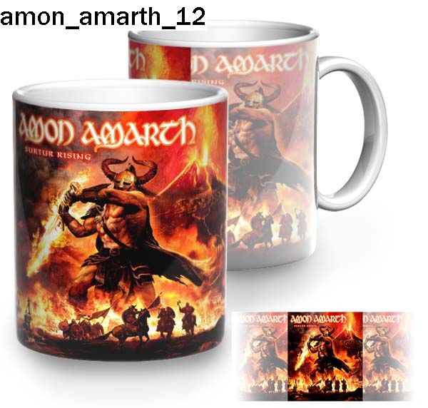Starannie wykonany kubek z nadrukiem szwedzkiej grupy Amon Amarth.