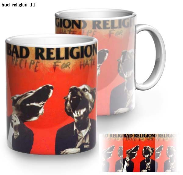 Starannie wykonany kubek z nadrukiem legendarnej amerykańskiej grypy punkrockowej Bad Religion.