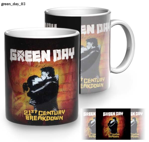 Starannie wykonany kubek z grafiką pop punkowej grupy Green Day
