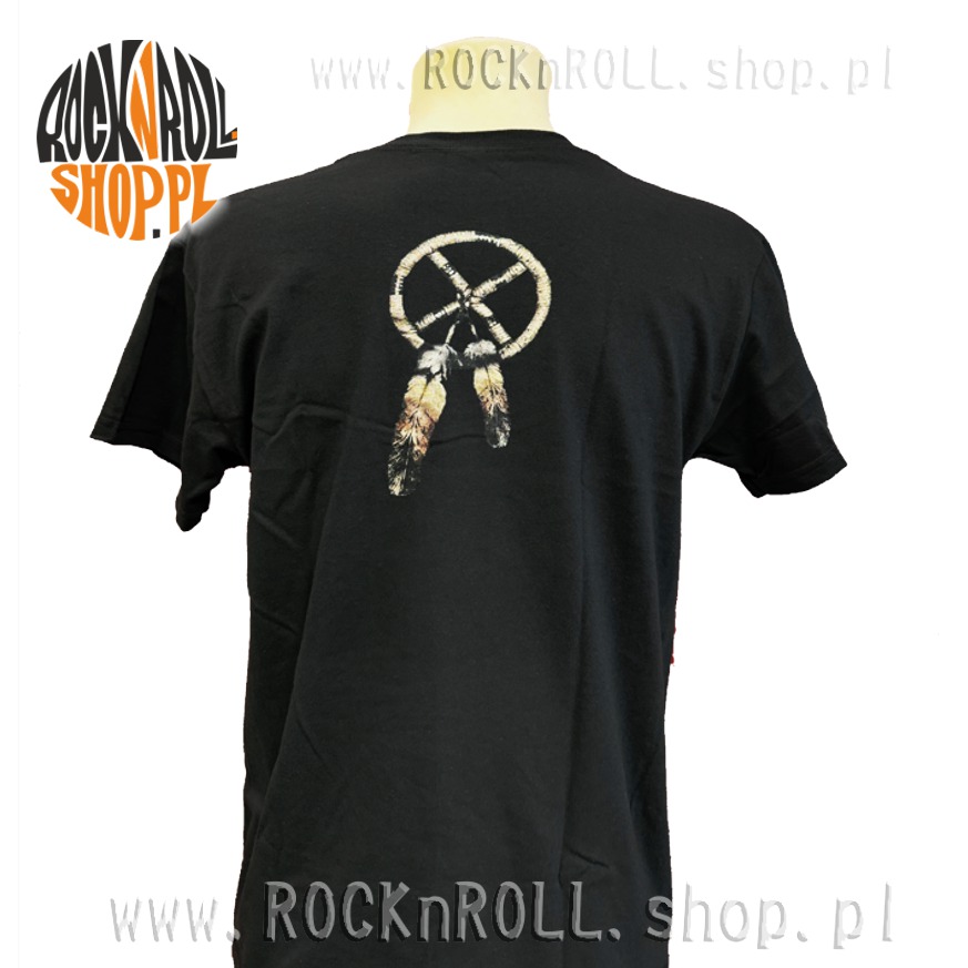 Na tylnej stronie znajduje się mniejszy nadruk – okrągły symbol przypominający łapacz snów, ozdobiony dwoma zwisającymi piórami.