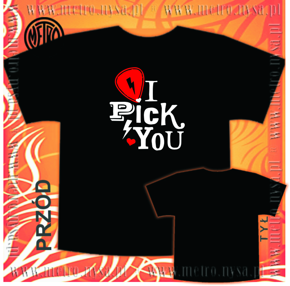 Czarny i wygodny t-shirt z nadrukiem I PICK YOUIdealny na walentynkowy prezent.