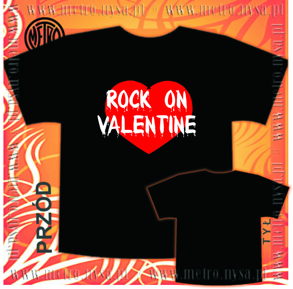 Czarny i wygodny t-shirt z nadrukiem rzedstawiającym serce, oraz z napisem ROCK ON VALENTINE