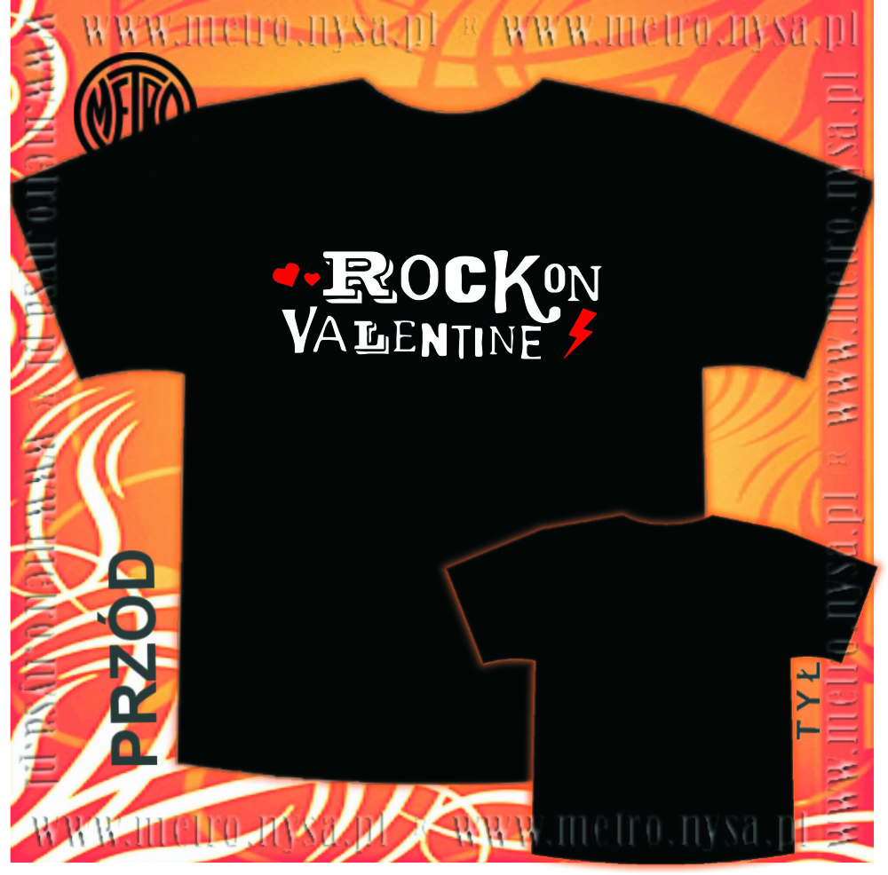 Czarny i wygodny t-shirt z nadrukiem ROCK ON VALENTINEIdealny na walentynkowy prezent.