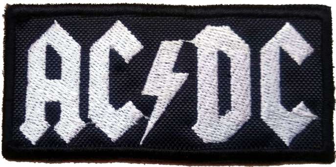 Prasowanka AC DC -logo Prasowanka haftowana z warstwą kleju po wewnętrznej stronie, który umożliwia przyprasowanie na odzieży przy pomocy gorącego żelazka. Rozmiar 8,5 X 4 cm
