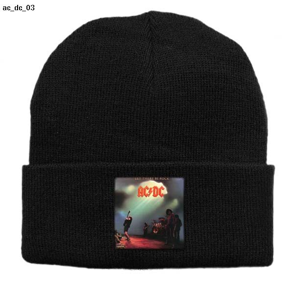 Czapka z wełny akrylowej w kolorze czarnym z nadrukiem zespołu AC/DC.